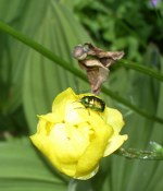 Das Abendessen in Beauville zusammen mit unseren Freunden hat den Schrecken wieder vergessen lassen. Nicht aber später die zahllosen Mückenstiche, die wir uns im Gartenrestaurant einhandelten. Während unserer Heimfahrt sprang plötzlich ein kleiner Fuchs auf die Straße, rannte in 5 m Abstand im Scheinwerferlicht auf der Straße vor dem Auto her und brachte sich dann nach links in Sicherheit. Manchmal muss man halt auch hupen.