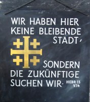 | Englisch | Hebrews 13, 14 | For here we have no lasting city, but we seek the city which is to come. |