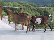 An einem Aussichtspunkt oberhalb der Schluchten kamen freilaufende Ziegen und prüften die Besucher, ob für sie etwas abfallen könnte. Ungeniert spazierten sie auf den engen Straßen herum, kümmerten sich nicht um Autos, Wohnmobile und Scharen von Motorradfahrern. Überlebt haben sie trotz des teilweise wilden Verkehrs. Nicht aber unser Außenspiegel auf der Fahrerseite. Bei erlaubten 40 km/h auf extrem schmaler Straße hilft es nicht, ordentlich rechts und knapp am Grabenrand zu fahren, wenn ein Raser – wohl rallye-geschädigt – die Kurve schneiden muss. Immerhin, nach dem, was dann nach dem Knall durch die Gegend flog: sein Außenspiegel war auch hin. Möge bald einer der Abgründe sich wenigstens ein bisschen seiner annehmen…, angehalten hat er nämlich nicht.