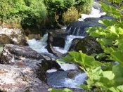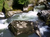 Unter dem Hinweisschild „Marmites de Géants“ konnten wir uns nichts vorstellen, deshalb schauten wir sie uns an; die Übersetzung sagt dazu „Riesenkessel“, aber die Übersetzung „Riesen-Planschbecken“ ist passender. Es war unglaublich; so was haben wir noch nie gesehen! Das Wasser – vom Bach kommend – schien plötzlich zu kochen, zischte und gurgelte. Ein tosendes Brodeln umgab uns auf einer Holzbrücke, die über den Kessel führte. Was die Natur alles schafft.